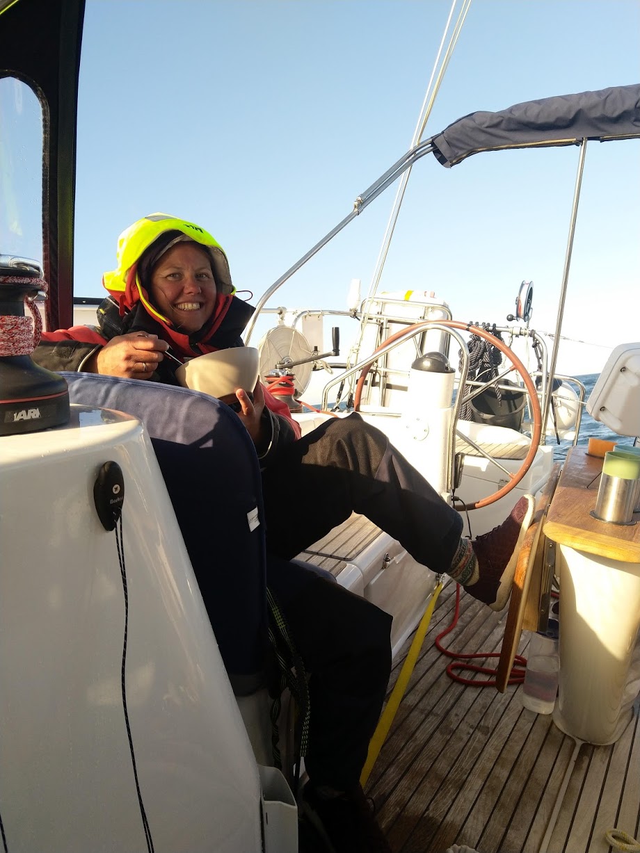 I 22-tiden roet det seg såpass at vi fikk alle til køys og ikke lenge etter ebbet vinden helt ut og det ble motor gjennom natten. Heidi gikk sin første ordentlige nattevakt og var veldig så effektiv med både rydding, oppvask, brødbaking og kaffe til påtroppende vakt. Dette lover godt!