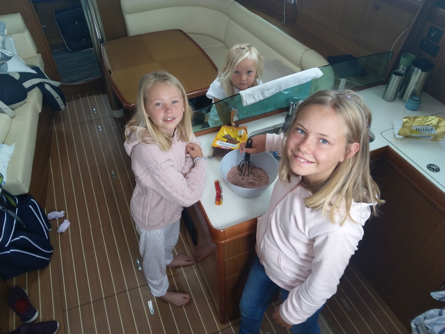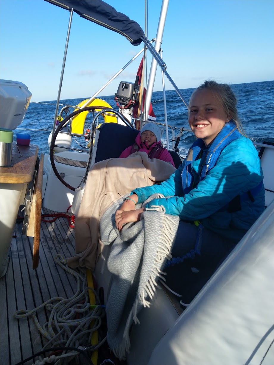 Vi la ut fra Mandal sammen med to andre båter, Ruffen og Terne. Ombord der er det også familier med henholdsvis to og tre jenter på samme alder som også er på tur. Vi har fulgt hverandre hele veien og hatt VHF kontakt hver fjerde time. Hyggelig å holde kontakten!