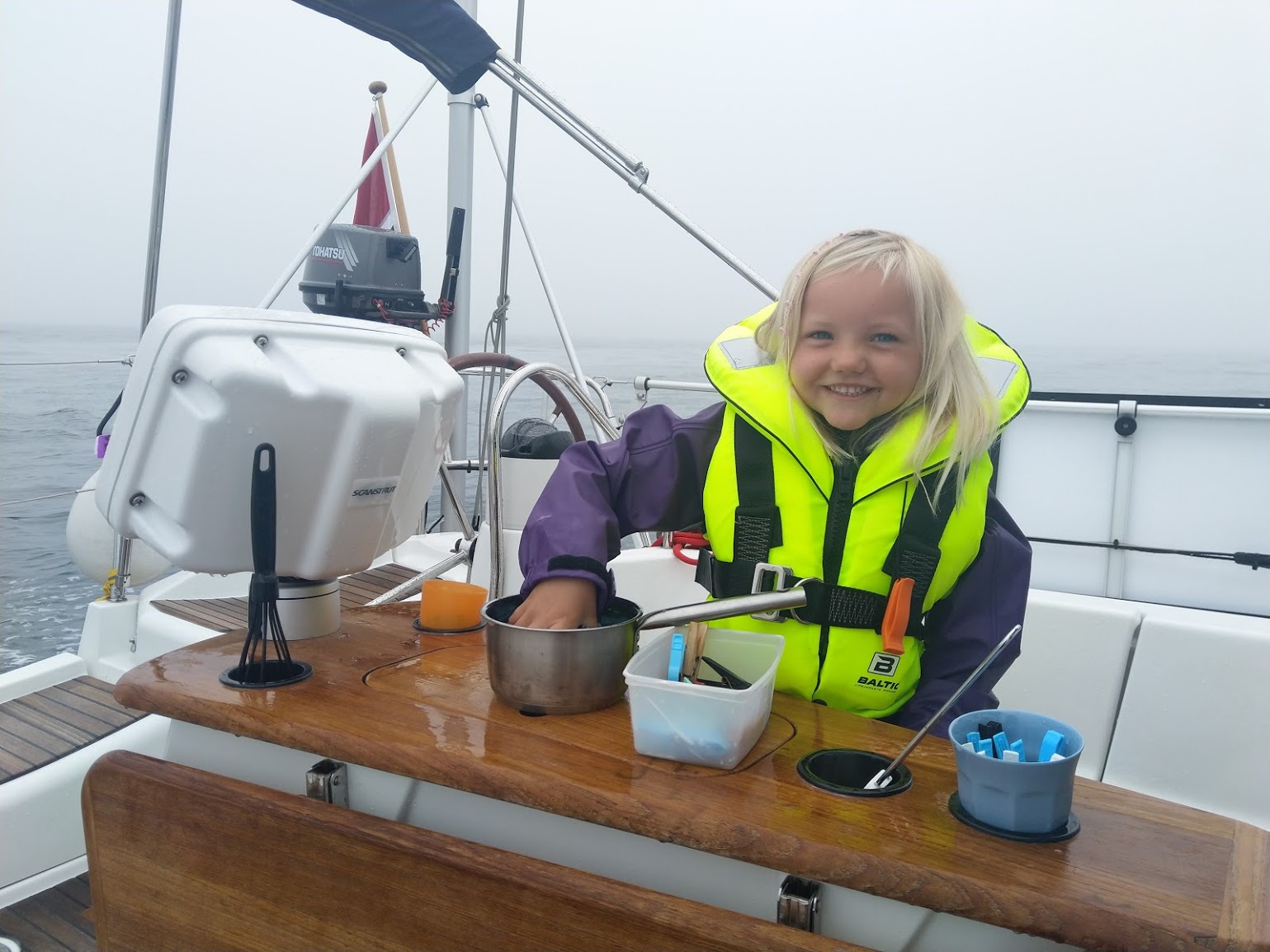 Dag tre har vært stille og rolig så nå har vi kjørt motor i 26 timer gjennom tåka. Dagen har gått fort likevel og vi har vasket, ryddet og kost oss med kake for å feire en vellykket kryssing av nordsjøen.