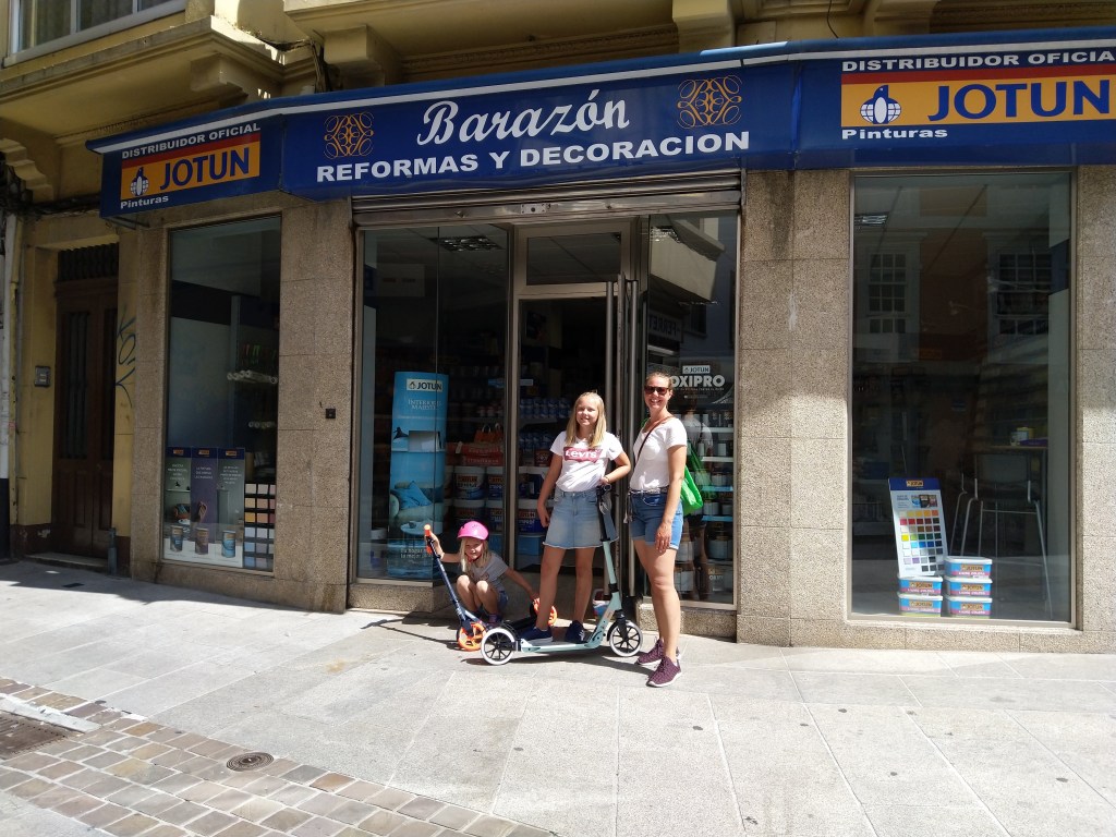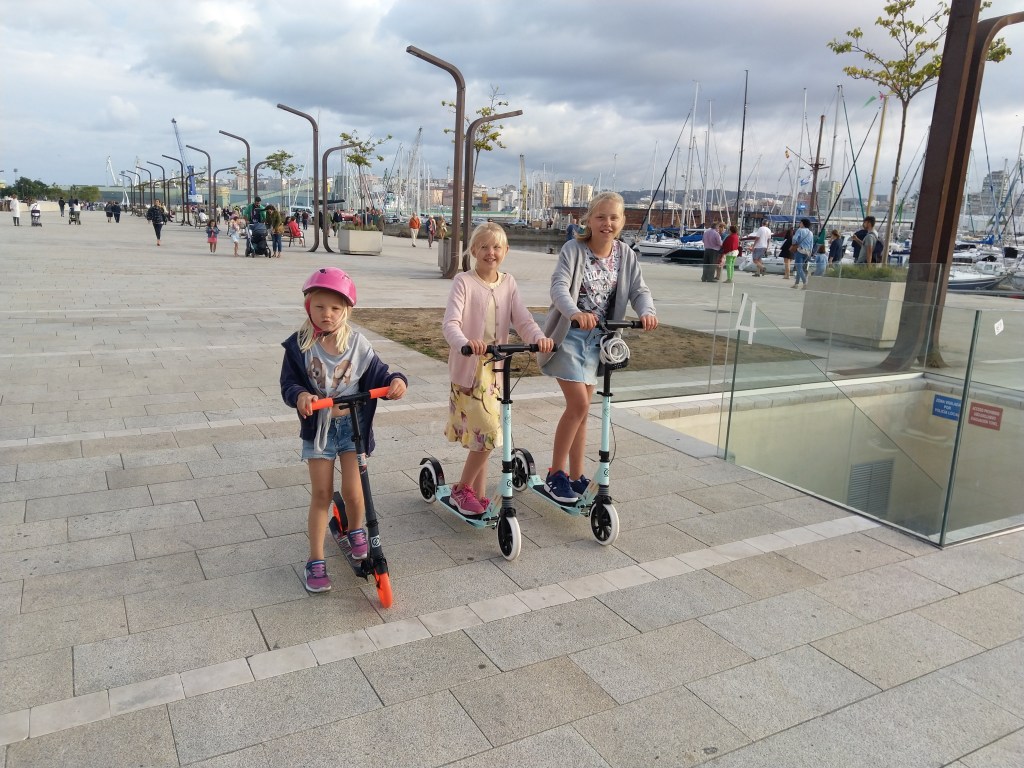 Første stopp på vei sydover ble A Coruna, en utrolig fin by som vi tilbrakte 4 dager i. Marinaen (den dyreste så langt) lå midt i byen med enkel tilgang til både shopping, restauranter, strender og bakere med nybakt brød hver morgen 🙂 Dagene ble en fin kombinasjon av byliv og og bading i utrolig fint vær. Sparkesykler til jentene har lenge stått på ønskelisten, det ble det også orden på;-)